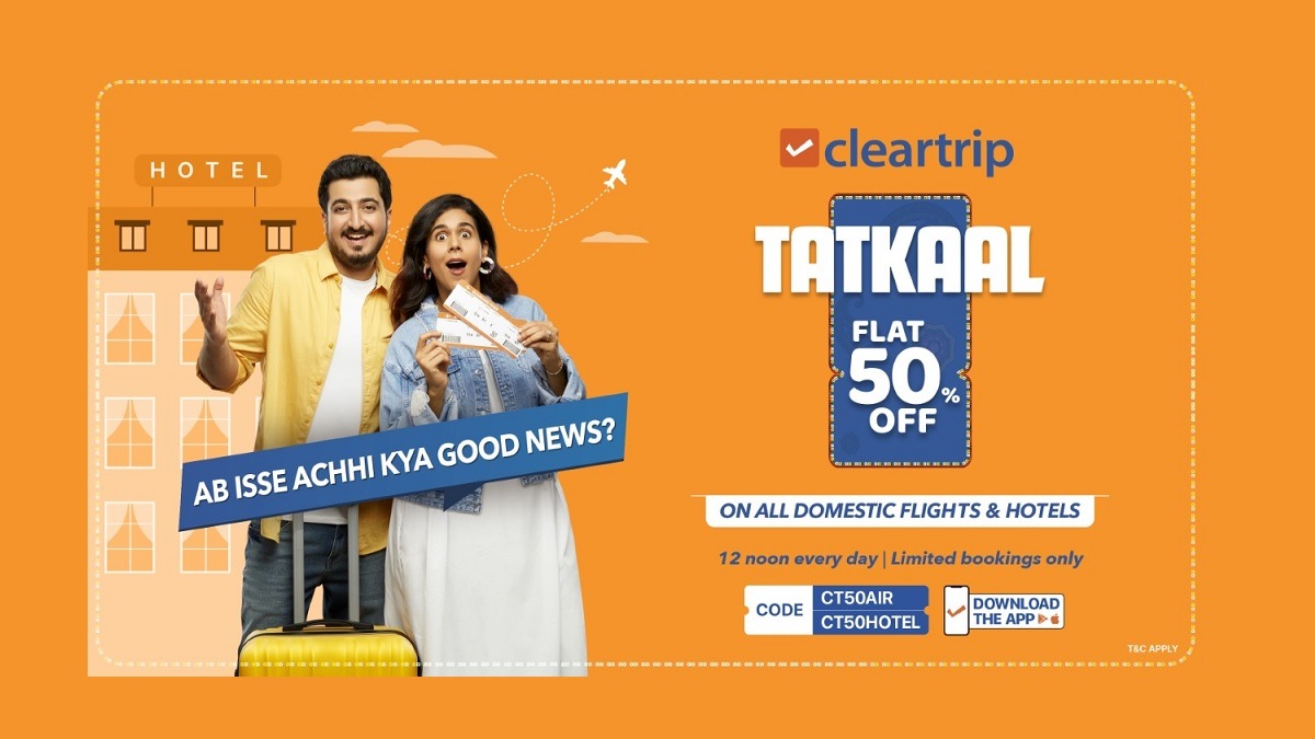 Cleartrip announces the offer of the year and we bet you don’t want to miss it!In what comes as an industry-first initiative, Cleartrip has launched the irresistible Cleartrip Tatkaal offer, where travellers can get a flat 50 percent discount on all domestic flights and hotels booked through the Cleartrip portal or mobile app.