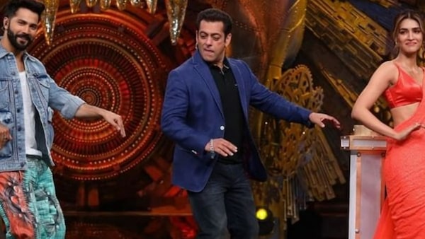 Salman welcomes Bhediya jodi Varun Dhawan and Kriti Sanon on stage. The two dance on Thumkeshwari upon their entry. Salman takes the baton from Varun and romances Kriti.