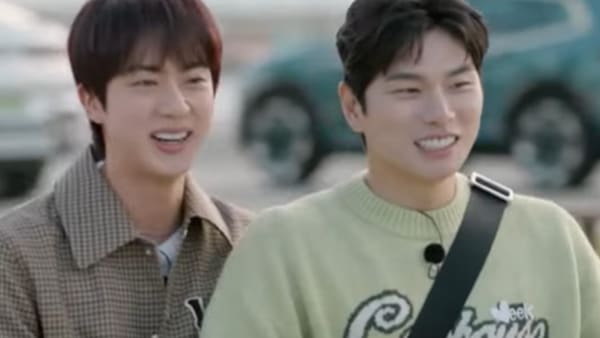 Handsome Guys just premiered in South Korea, just two days before BTS Jin resumes his reality show, Run Jin. The first episode that is out has been going viral for two moments feauturing the K-Pop idol. The first is Seokjin's introductory scene (and meeting old friend Lee Yi-kyung there), and the second is his reaction on hearing the show's title.