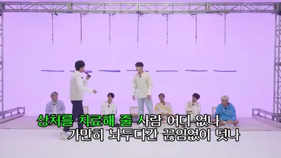 Jin stepped up to sing the next song, titled Wild Flower by Park Hyo Shin, and impressed fellow BTS members. Suga performed 10 Minutes by Lee Hyori. During the performance, Jungkook confessed that he found Lee Hyori beautiful in the song. Suga also performed My Love By My Side.