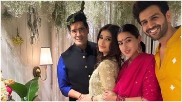 Later, another picture of Sara and Kartik standing together appeared online. Raveena Tandon's daugher Rasha and Manish Malhotra, a renowned designer for Bollywood, also joined them. On her Instragram story, Rasha shared the happy picture of them all posing together.