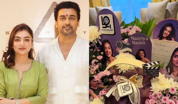 Actor Suriya’s new film Suriya 47 has welcomed one of its lead actors Nazriya Fahadh to the sets. The latter to took to her Instagram story to share the same, as she was welcomed by a hamper and bouquet of flowers.