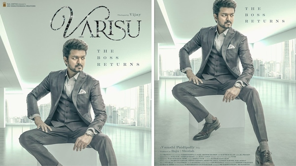 The most-anticipated first look poster of Vijay's next is here. The film which has been tentatively titled Thalapathy 66 ever since it went on floors has now been titled Varisu. The poster features the star seen dressed up in a stylish grey suit sitting inside a huge building.